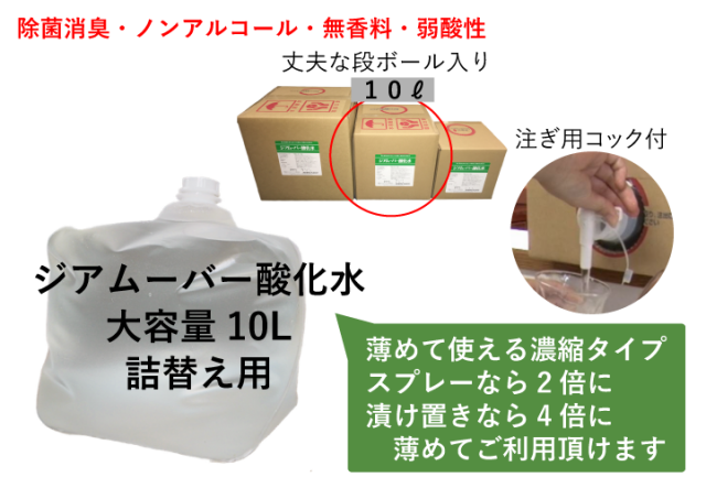 弱酸性次亜塩素酸水ジアムーバー酸化水 (200ppm) 10リットル/【選べる☆プレゼント2個付】